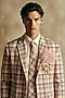 Featuring a multi-colored plaid blazer in suiting base. It is paired with pants and a tie. Style it with pants and a pair of shoes for an office wear.