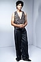 Featuring a multi-colored vest in tulle base with cluster embroidery. Accentuate it with sleek black boots and a textured belt to enhance its edgy appeal, creating a striking ensemble ideal for evening parties, upscale gatherings or fashion-forward events.