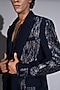 Featuring a navy blue jacket in luxe suiting base with meteor embroidery. It is paired with pants. Style it up with a shirt and sneakers for an after party, sangeet or engagement ceremony, exuding charm and timeless elegance.