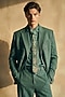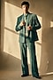 Featuring a smoke green blazer in luxe suiting base. It is paired with pants. Style it with a pair of shoes for an evening formal meeting or office wear.