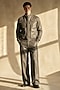 Featuring a stone grey bomber jacket in faux leather base. It is paired with pants and a tie. Style it with a pair of shoes for a complete look.