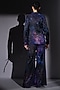 Featuring a purple jacket in sequins georgette base with galaxy print. It is paired with pants. Accentuate it with statement earrings and sleek heels for a bold, modern look, perfect for cocktail evenings, after-parties, fashion events, or upscale night-outs.