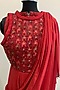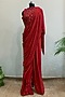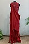 Featuring a red saree jumpsuit in organza and chiffon base. It has baadla and beads handwork embroidery.