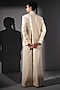 Featuring a white jacket in luxe suiting base. It is paired with pants. Style it up with statement earrings and boots for a stylish ensemble, ideal for cocktail evenings.