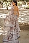 Featuring a brown saree in georgette base with dori embroidery. It is paired with a raw silk bralette. Accentuate with statement earrings and heels for a festive occasion.