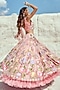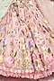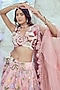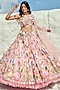 Featuring a pastel pink frilled lehenga in jacquard and net base with floral hand embroidery. It is paired with a matching padded blouse having hand embroidery and a net dupatta having pearl embroidery.