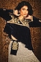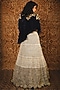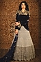 Featuring a pearl white lehenga in mesh base with hand-dyed print, golden zardosi hand embroidery, and moti jhumkas. It is paired with a contrasting sapphire blue velvet blouse, a net dupatta, a belt, and a pouch.