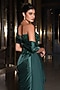 Featuring a bottle green draped saree in armani satin base. It is paired with a hand-embroidered corset blouse. Accentuate it with statement diamond or zircon earrings, a sleek bracelet, and metallic heels, completing the look with soft waves or a clean bun for a refined finish. Ideal for cocktail nights, engagement parties or evening celebrations.