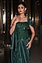 Bottle Green Armani Satin Hand Embroidered Draped Saree Set