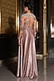 Featuring a dusty rose draped skirt saree in foil jersey base. It is paired with a hand embroidered corset blouse and a choker hanging. Accentuate it with delicate diamond or zircon earrings and a sleek low-bun hairstyle to highlight its modern corset detailing. Ideal for cocktail evenings, engagement parties or elegant festive gatherings.