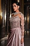 Dusty Rose Foil Jersey Hand Embroidered Draped Skirt Saree Set