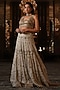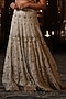 Featuring an off-white lehenga in net base with golden hand embroidery. It is paired with an embroidered blouse and a dupatta. Accentuate it with zircon jewellery, an embellished clutch and a sleek hairdo for a stylish ensemble, ideal for a wedding, sangeet or engagement ceremony.
