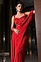 Featuring a red draped saree in lycra base. It is paired with a blouse having cut work hand embroidery. Accentuate it with minimal zircon jewellery and a sleek hairdo for a stylish ensemble, ideal for receptions, modern evening events or upscale festive celebrations.