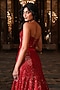 Featuring a signature red fish-cut lehenga in net base with hand embroidery. It is paired with an embroidered corset and a dupatta. Accentuate it with emerald jewellery, an embellished clutch and a sleek hairdo for a stylish ensemble, ideal for a wedding, sangeet or engagement ceremony.