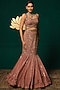 Featuring a beige lehenga in chinon base with embroidery. It is paired with an embroidered blouse. Accentuate it with dangler earrings and heels for a wedding or sangeet ceremony.