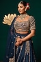 Featuring a deep navy lehenga in chinon base with zardosi and cutwork hand embroidery. It is paired with an embroidered blouse and an embroidered dupatta. Accentuate it with swarovski or silver jewellery, embellished heels and a potli bag for a bridal look, Perfect wear for your wedding, sangeet or engagement ceremony.