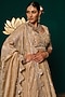 Featuring a golden-beige lehenga in shimmer tissue base with thread, floral motif, zardosi, cutdana and sequins embroidery. It is paired with an embroidered blouse and an embroidered dupatta. Accentuate it with silver or pearl jewellery, embellished heels and a potli bag for a bridal look, Perfect wear for your wedding, sangeet or engagement ceremony.