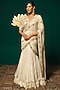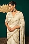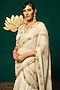 Featuring an ivory draped saree in chinnon base with sequins, floral motifs and cutdana moti floral handwork. It is paired with an embellished blouse. Accentuate it with diamond jewellery, low sleek bun and heels for a wedding, engagement, sangeet ceremony or cocktail.