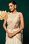 Featuring an ivory ready-to-wear saree in chinon and tissue base with an attached pallu and embroidery. It is paired with an embroidered blouse. Accentuate it with statement jewellery and heels for a sangeet ceremony.