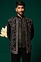 Featuring a black blazer in silk base with cutdana handwork. It is paired with a jacket and pants. Style it with shoes for a festive occasion, sangeet or engagement ceremony.