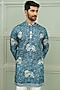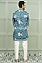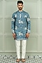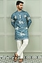 Featuring a blue kurta in silk base with floral print. It is paired with white pants. Perfect for a festive occasion or engagement ceremony, exuding charm and elegance.