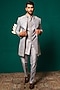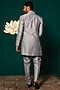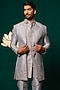Featuring a grey sherwani in base with sequins, cutdana and zardosi handwork. It is paired with a jacket and pants. Style it with mojaris for a wedding, sangeet or engagement ceremony.