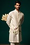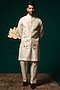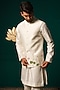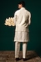 Featuring a white nehru jacket in silk base with hand paint and handwork. It is paired with a kurta and pants. Perfect for a wedding or sangeet ceremony, exuding charm and elegance.