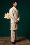 White Silk Handpainted & Handwork Nehru Jacket Set