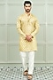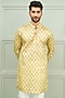 Featuring a yellow kurta in silk base with floral print. It is paired with white pants. Perfect for a festive occasion, haldi or engagement ceremony, exuding charm and elegance.