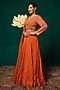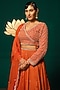 Featuring an orange lehenga in chinon base. It is paired with a blouse having cutdana and sequins hand embellishments, including a tissue dupatta. Accentuate it with zircon jewellery, heels and a clutch for a wedding or sangeet ceremony.