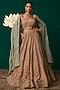 Pastel Peach Shimmer Tissue Bead & Thread Embroidered Lehenga Set