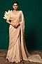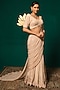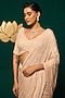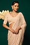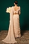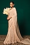 Featuring a peach draped saree in chinnon base with sequins and cutdana handwork. It is paired with a blouse. Accentuate it with diamond jewellery, low sleek bun and heels for a wedding, engagement, sangeet ceremony or cocktail.