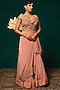 Peach Chinon Embroidered Lehenga Set