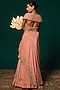Featuring a peach lehenga in chinon base with embroidery. It is paired with an embroidered off-shoulder blouse. Accentuate it with dangler earrings and heels for a wedding or sangeet ceremony.