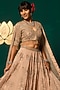Featuring a peach lehenga in tissue base with embroidery. It is paired with an embroidered blouse and a dupatta. Accentuate it with dangler earrings and heels for a wedding or sangeet ceremony.