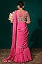 Featuring a pink ready-to-wear saree in chinon base with sequins and cutdana handwork. It is paired with a blouse. Accentuate it with statement jewellery and heels for a sangeet ceremony.