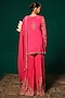Featuring a pink kurta in chinon base with cutdana and sequins hand embellishments. It is paired with embellished sharara pants and a tissue dupatta. Accentuate it with kundan polki jewellery and heels for a wedding or sangeet ceremony.