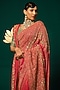 Featuring a pink saree in shimmer tissue base with cutdana, sequins and jaal hand embellishments. It is paired with a green blouse and a pink embellished dupatta. Accentuate it with kundan polki jewellery, embellished heels and a potli bag for a wedding or engagement ceremony.