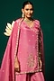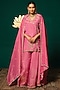 Featuring a pink kurta in shimmer tissue base with embroidery. It is paired with sharara pants and a dupatta. Accentuate it with statement jewellery and heels for a sangeet ceremony.