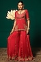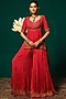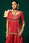 Featuring a red kurta in chinon and tissue base with embroidery. It is paired with embroidered sharara pants and a dupatta. Accentuate it with statement jewellery and heels for a sangeet ceremony.