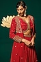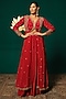Featuring a red lehenga in crepe base. It is paired with a blouse having cutdana and sequins hand embellishments, including an embellished cape. Accentuate it with kundan polki jewellery and heels for a wedding or sangeet ceremony.