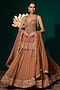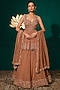 Rust Brown Chinon Sequins Embroidered Lehenga Set