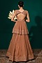 Featuring a rust brown lehenga in chinon base with sequins and floral thread embroidery. It is paired with an embellished peplum top and a pure tissue dupatta. Style it with block heels, polki earrings and a sleek bun for a regal look. Ideal for a sangeet ceremony or weddings.