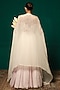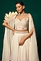 Featuring a white cape in chinon base with handwork. It is paired with an embellished blouse and a lehenga. Accentuate it with polki jewellery, wavy curls and block heels for festive, engagement, sangeet or cocktail ceremonies.