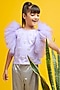Featuring a purple butterfly top for girls in lycra and net base with ruffled sleeves, hearts, sequins and moti hand embroidery. It is paired with contrasting shimmer silver flared palazzo pants.