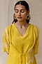 Featuring a yellow dress in cotton silk base with tie-up at the waist, hand painting, and hand embroidery. It is paired with a matching slip.