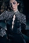 Featuring a black gown in organza base with embellished sleeves. Accentuate it with statement crystal earrings and sleek heels, perfect for cocktail soirees or glamorous evening events.