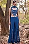 Featuring a blue corset in crepe base with hand embroidery. It is paired with sharara pants and a dupatta. Style this kurta with statement jewellery and heels for a complete festive ready-look.