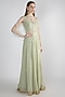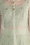 Featuring a sage green blouse in silk base with karachi embroidery. It is paired with a matching lehenga skirt in georgette base and shirt in net base having zari border.
