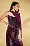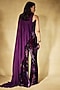 Featuring a deep plum cape in georgette base. It is paired with a velvet corset and trousers. Accentuate it with zircon earrings and stilettos for gala dinners or cocktail parties.